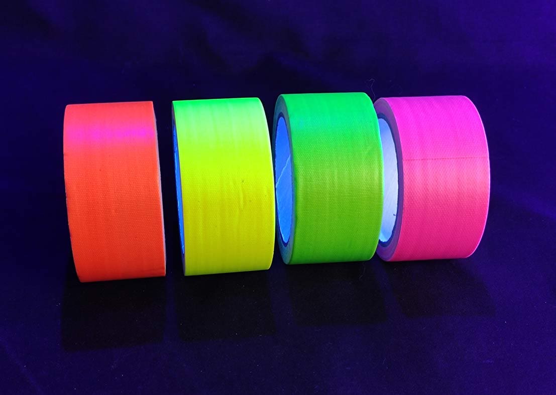 Cinta adhesiva de poliéster fluorescente y reactiva a la luz ultravioleta. Es muy resistente e ideal para marcaje de zonas bajo luz UV o bien como elemento decorativo.
