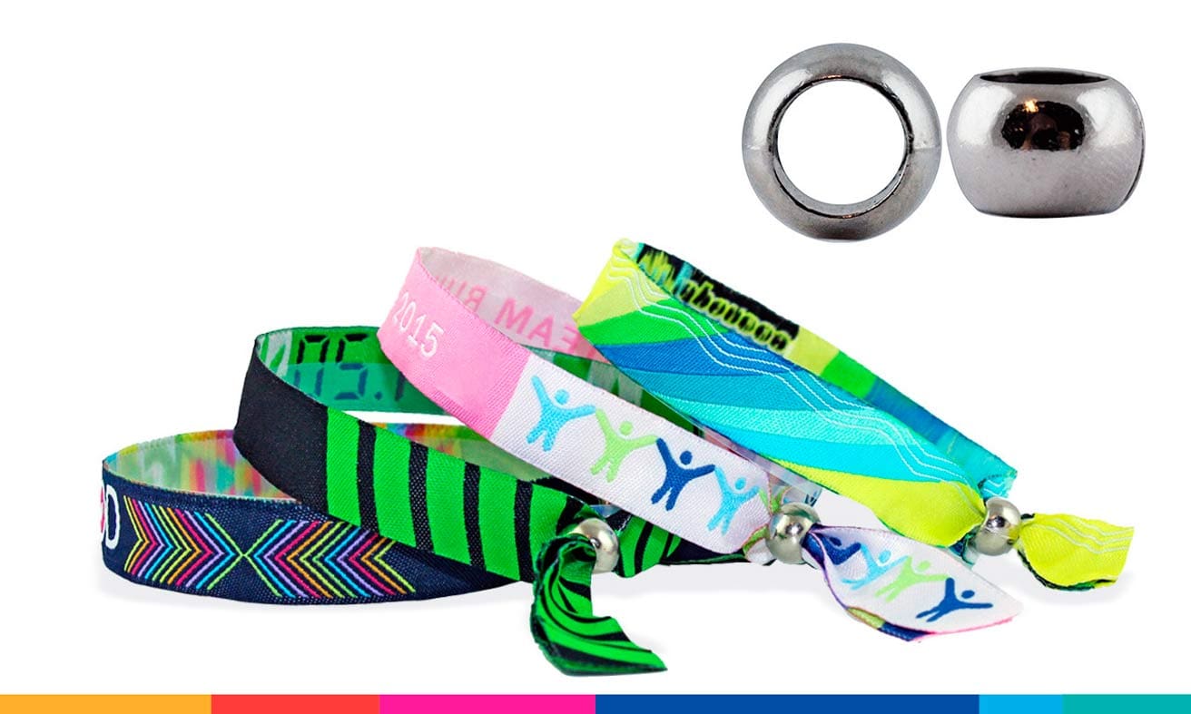 Pulseras de tela bordada con cierre de metal reutilizable o de un solo uso – Pack de 300 u.