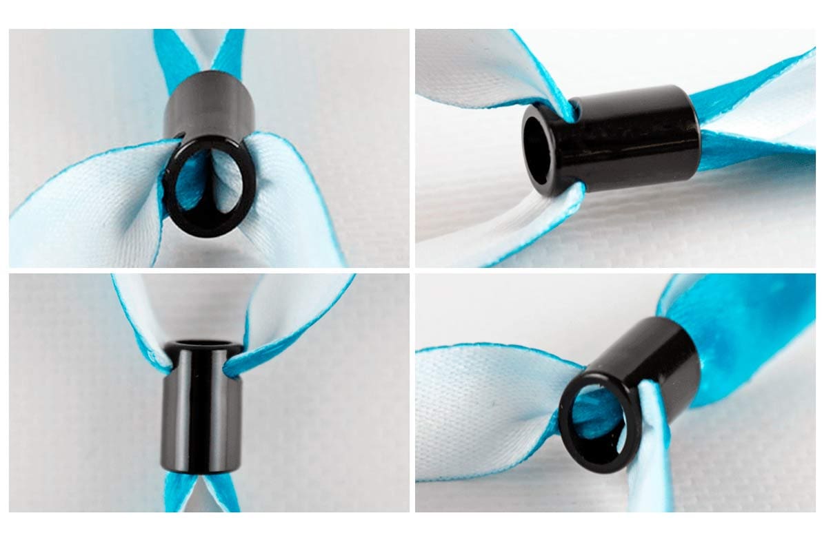 También incluyen un cierre cilíndrico de plástico deslizante y anti torsión de un solo uso. Alternativamente pueden solicitarse con cierre deslizante reutilizable.